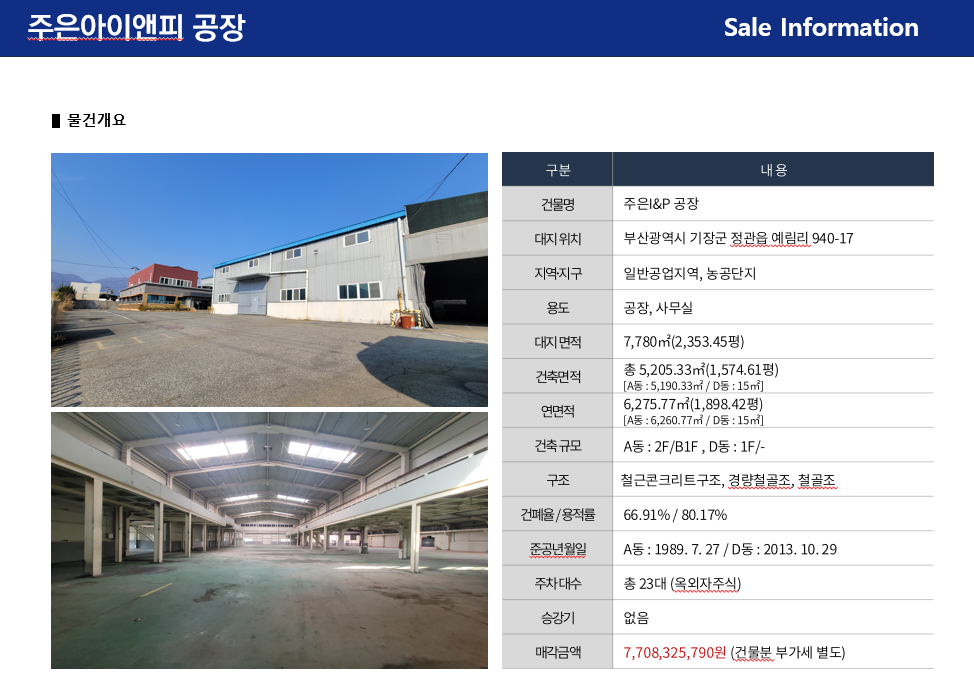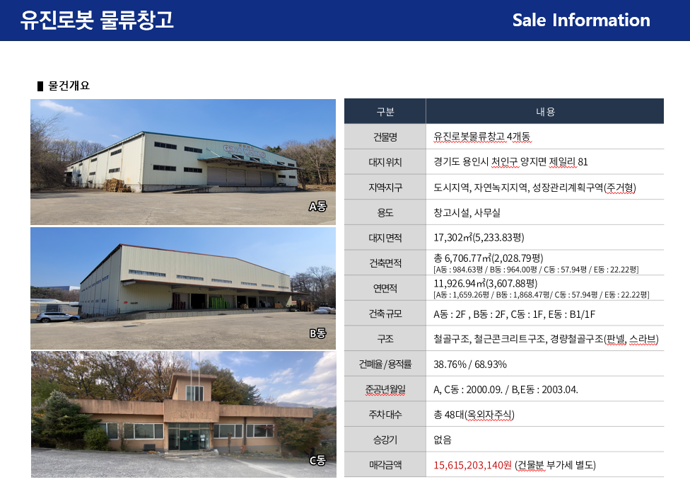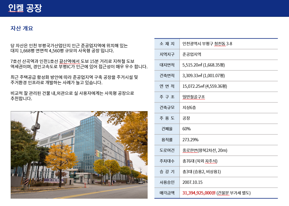 소개드리는 자산들은 수도권과 지방 주요 산업지구에 위치한 공장, 물류센터, 전시장, 업무시설 등으로,