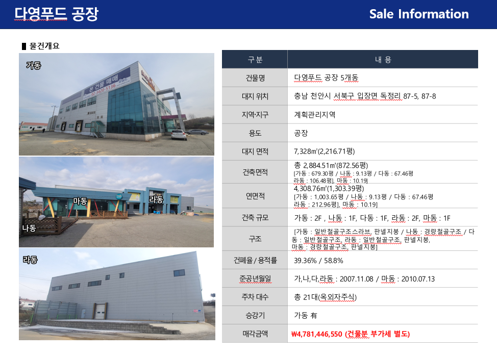 - 공장동 2개, 사무동, 위험물 저장동 포함